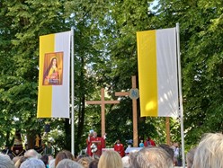 Nachdem wir auf dem Kalvarienberg angekommen waren und uns gestärkt hatten, feierten wir mit weiteren ca. 2.000 Gläubigen einen Festgottesdienst im Freien. Musikalisch wurde dieser von der Blasmusik unter dem Dirigenten Josef Hartl gestaltet.